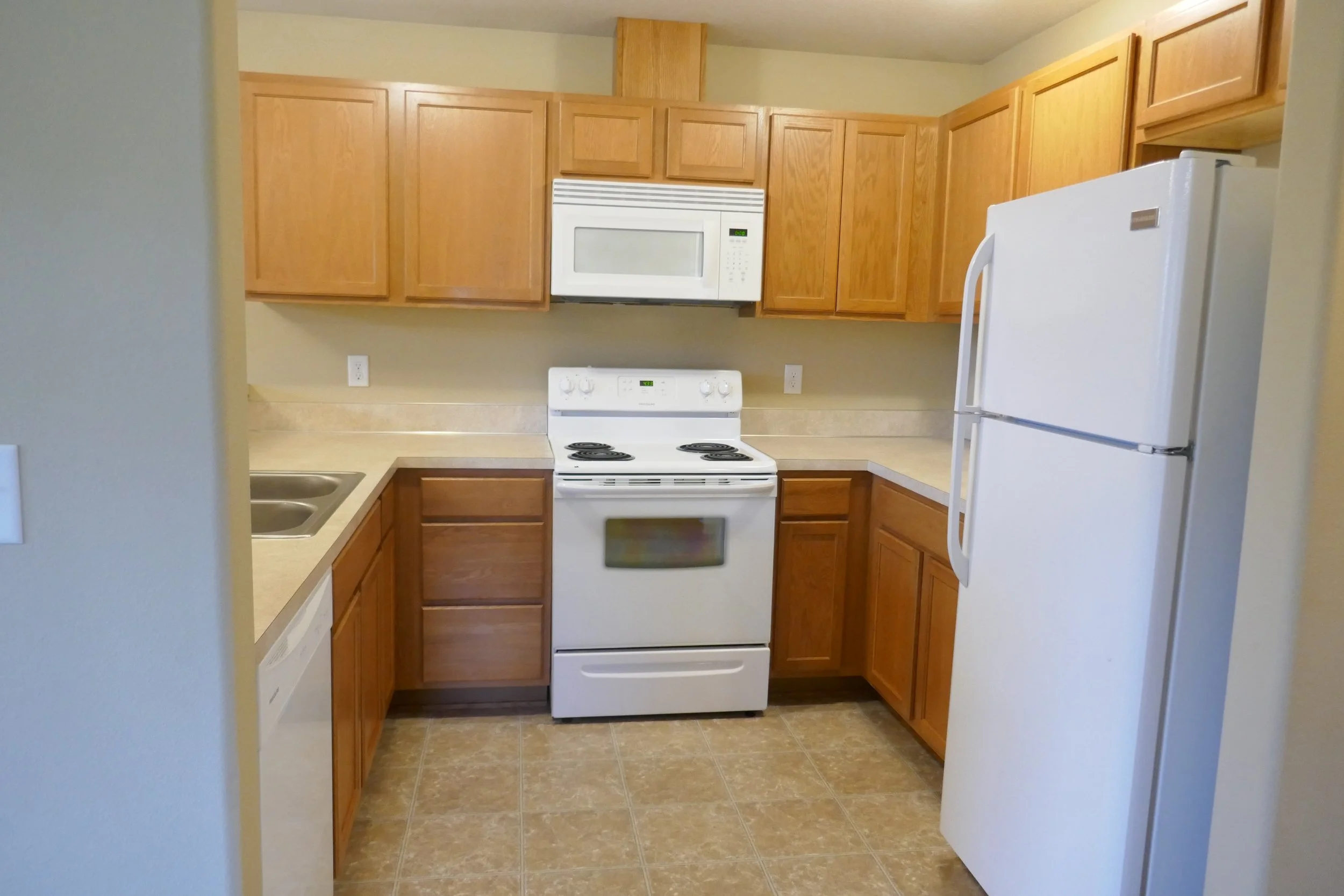 Four-plex style building. These newer units are in a suburban housing complex and are close to shopping. Water, sewer, garbage are included in the rent. Off-street parking, ample storage, and spacious laundry room in each unit with washer/dryer. Units have refrigerator, stove, built in dishwasher, microwave, and disposal. Unit A is on the ground level.